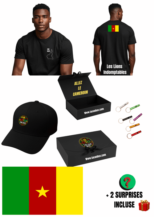 Plongez au cœur de l'ambiance de la Coupe d'Afrique des Nations avec notre Box CAMEROUN spécialement pensée pour les vrais supporters !