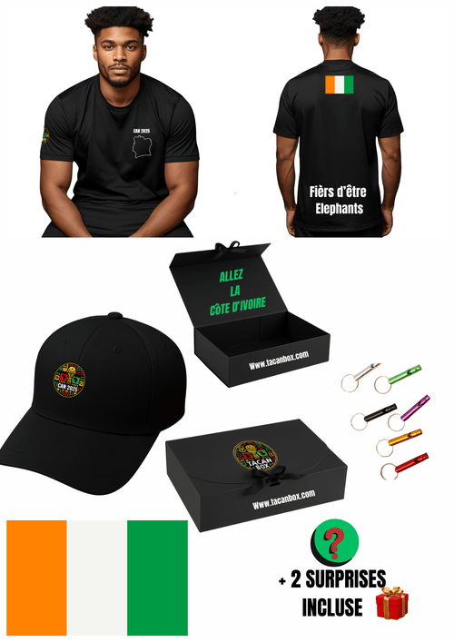 Plongez au cœur de l'ambiance de la Coupe d'Afrique des Nations avec notre Box COTE D'IVOIRE spécialement pensée pour les vrais supporters !